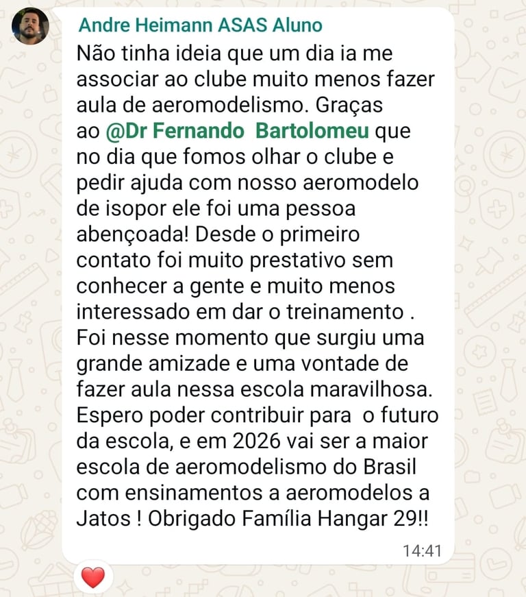 Já ensinei centenas de aeromodelista no Brasil sendo que alguns atualmente são presidentes de Clubes de Aeromodelismo.