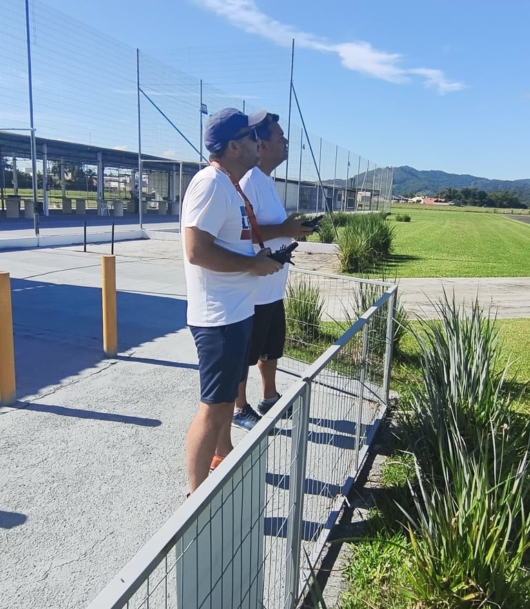 Nossa metodologia é muito segura. Voamos com dois rádios FRsky conectados por Bluetooth para que a todo momento o controle do jato esteja entre o aluno e o instrutor.